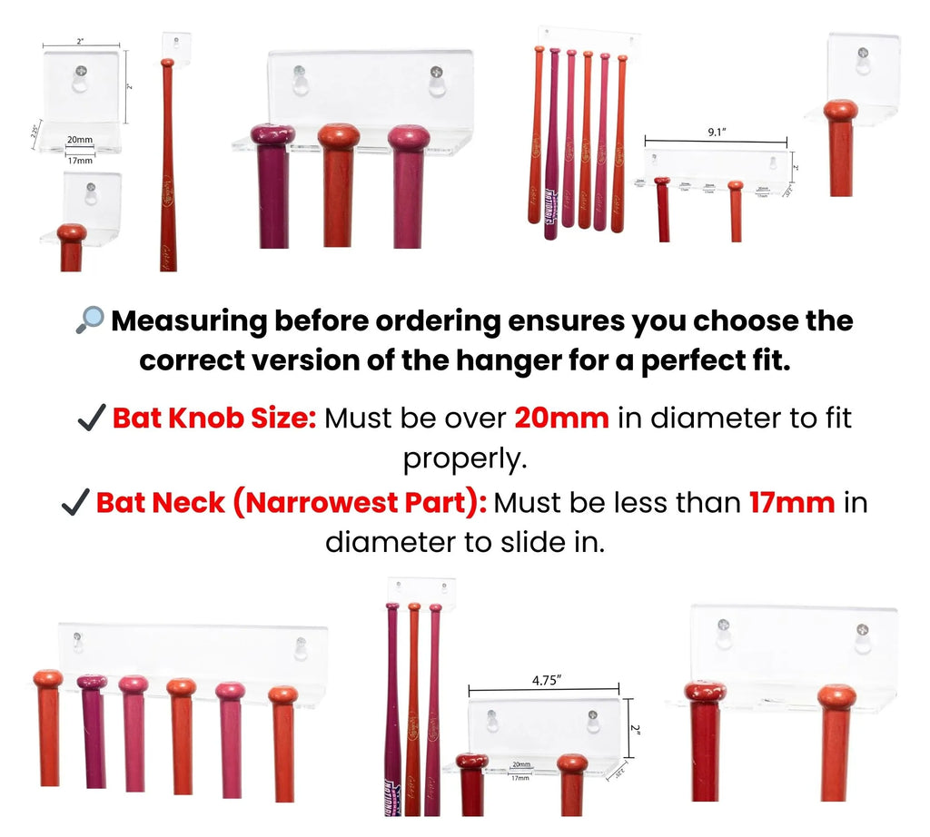 - Mini Baseball Bat wall mounts - https://www.betterdisplaycases.com/products/mini-baseball-bats-display-vertical-wall-mount-clear-acrylic-bracket-a066
