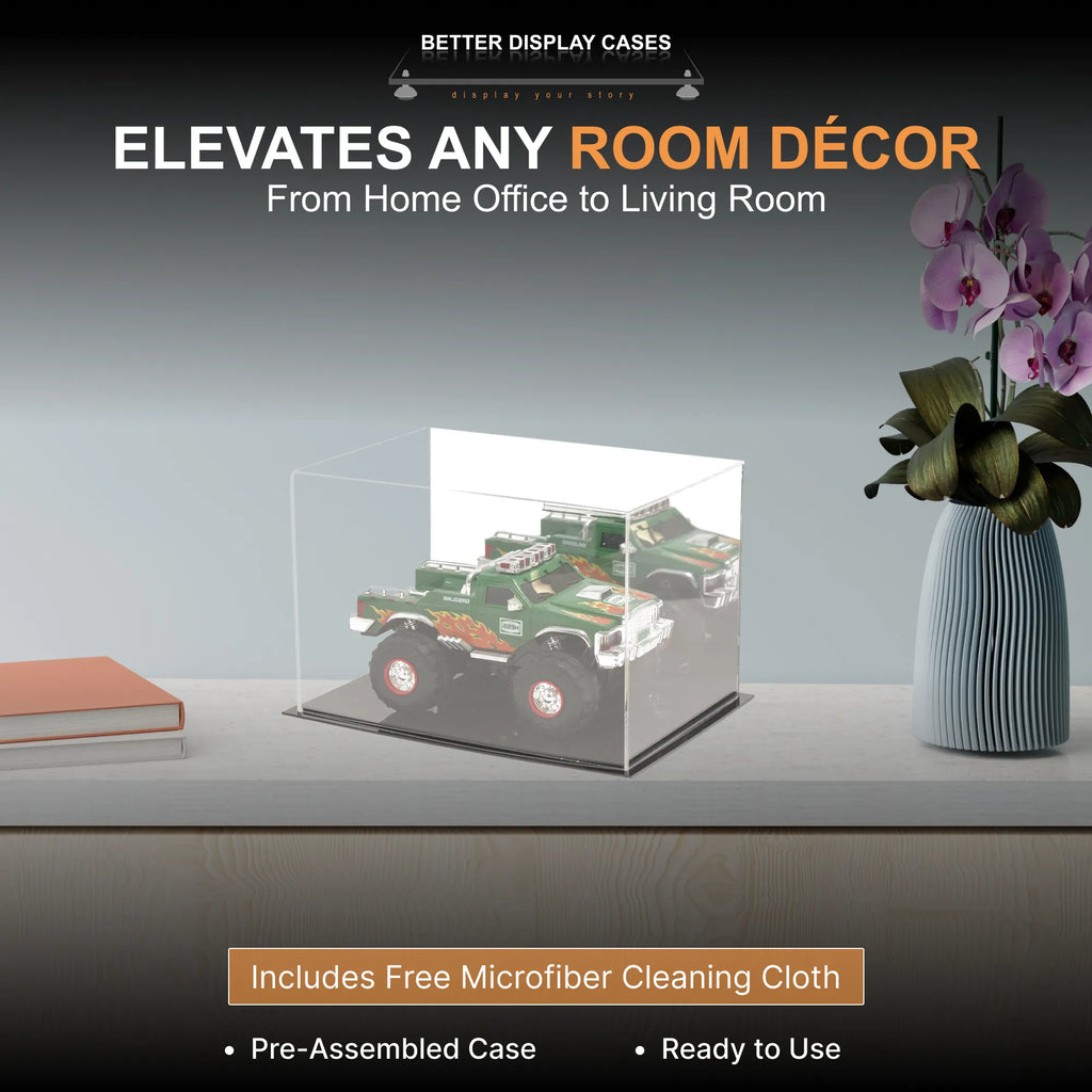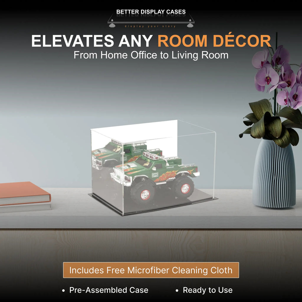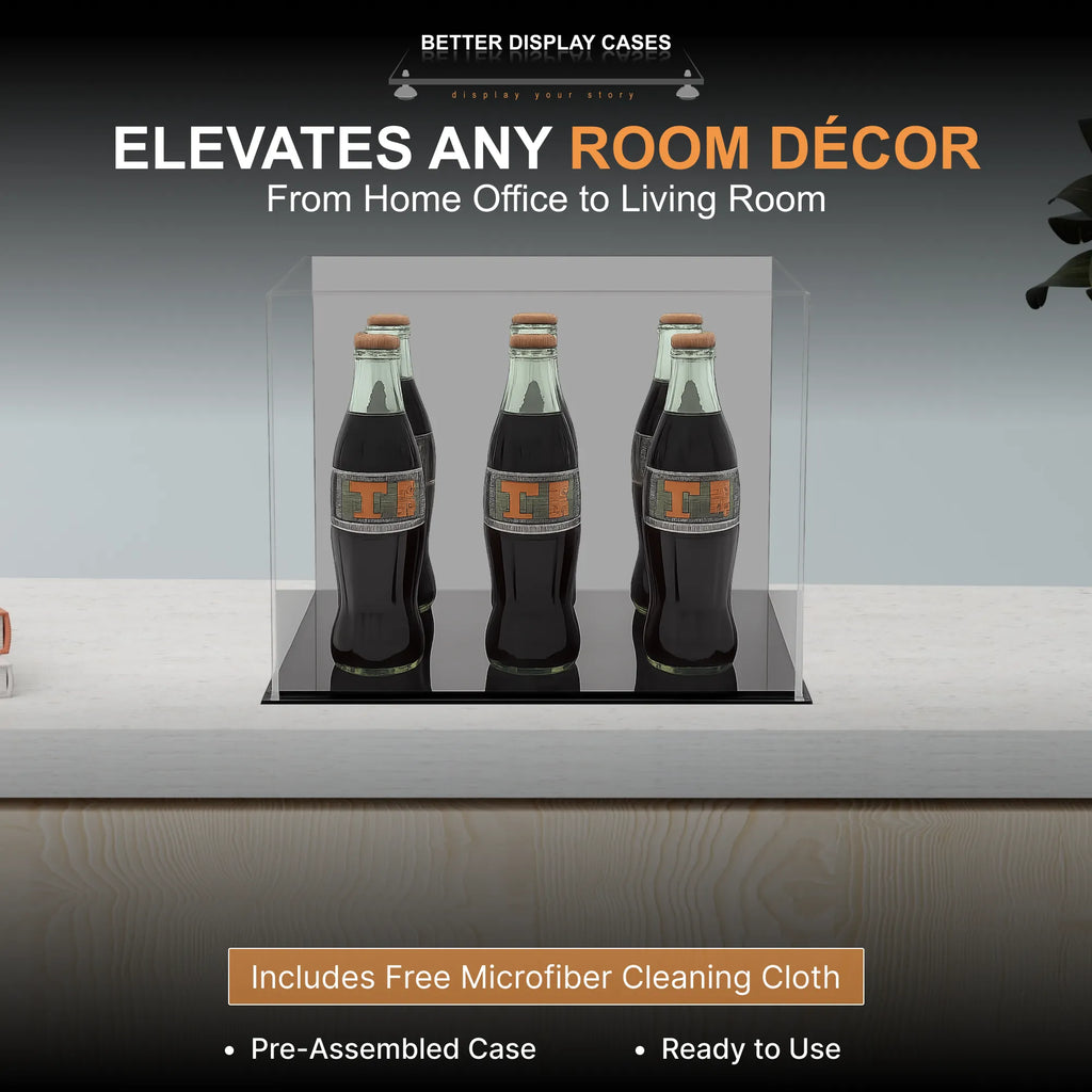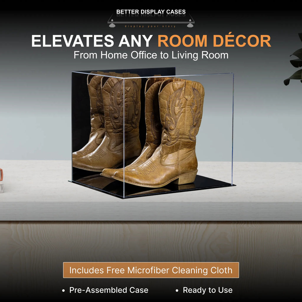 We use durable acrylic our cases are lighter, safer, and clearer than glass. The front, back, and tops of our clear cases are molded from a single sheet of acrylic, giving them an aesthetically pleasing roll-over appearance with fewer seams. Our mirrored cases give a deeper and fuller look to your items. The double sheeted black acrylic base also provides a faint dark reflection for your items which gives an appearance that compliments any surrounding decor.