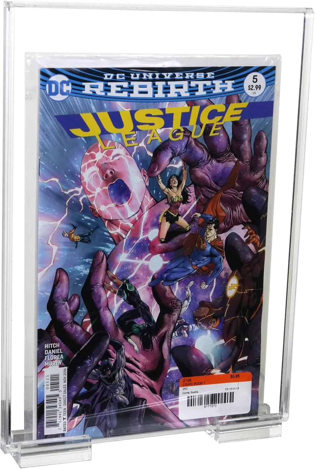 Our significanlty UV protected comic book case ensures that your valuable items are safeguarded from harmful light exposure. The clear acrylic construction of our comic book display case allows for a clear view from all angles, making your memorabilia the centerpiece of any room. This comic book case is an ideal gift for any collector looking to protect and display their favorite items.