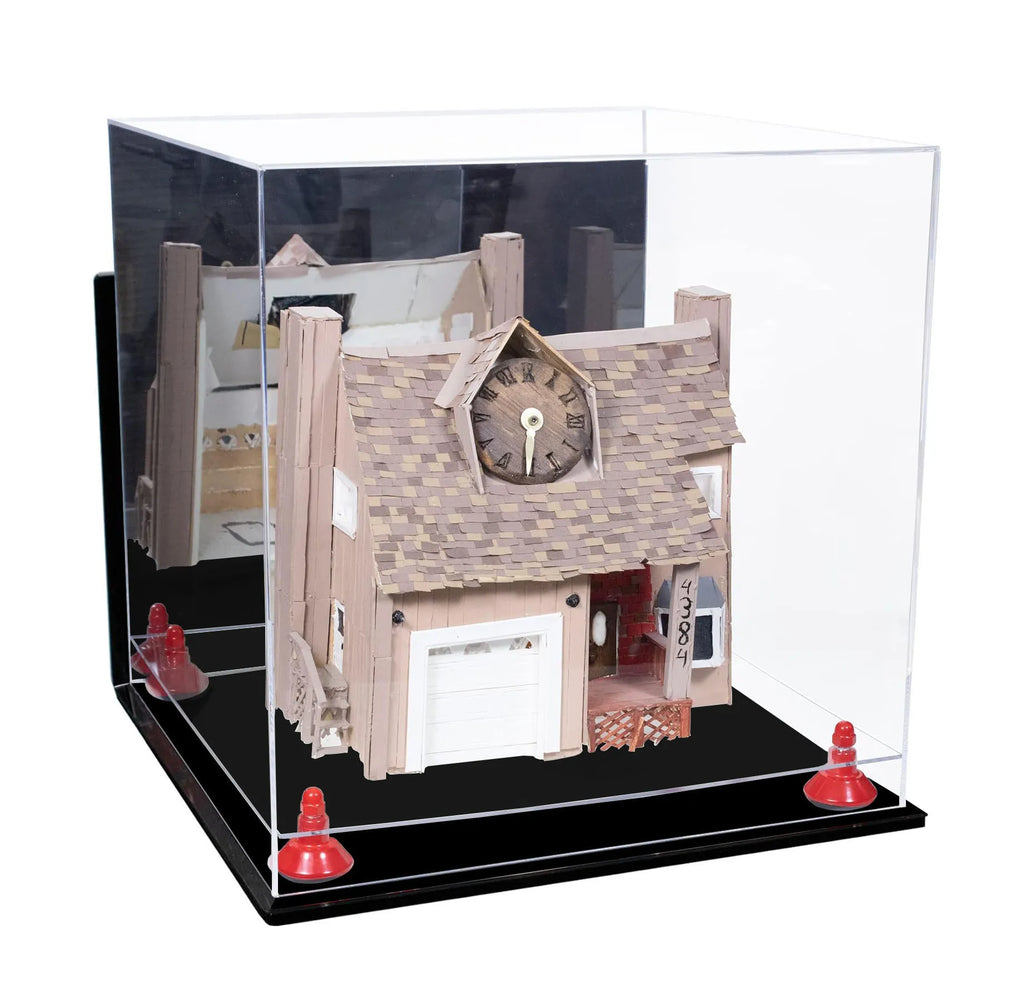 The black and turf acrylic two-tiered base comes with gold, silver, black, red, white, orange, blue, purple, green, pink or yellow metal risers, not cheap plastic ones like some manufacturers use. The solid platform allows anything that fits in this case to be displayed. Each case includes rubber feet placed on the bottom to protect case from scratching your shelf or table. This is a wonderful gift for the person who has it all, but needs something to display it in.