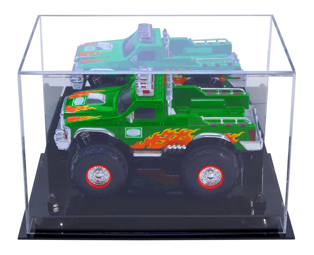 Protect and display your collectibles in one of our beautiful, high-quality display cases. This display case will make your memorabilia stand out and provide protection from damage caused by dust, spills, fingerprints, light or simply something falling on top of it. These cases are constructed of 1/8" crystal clear, durable high clarity acrylic on 4 sides and the top. Front and top of case are made from one piece of acrylic (plexiglas), giving an aesthetically pleasing rollover appearance with fewer seams. Back is mirrored and wall mount is included. Two-tiered base comes with metal risers, not cheap plastic ones like some manufacturers use. The solid platform allows anything that fits in this case to be displayed.