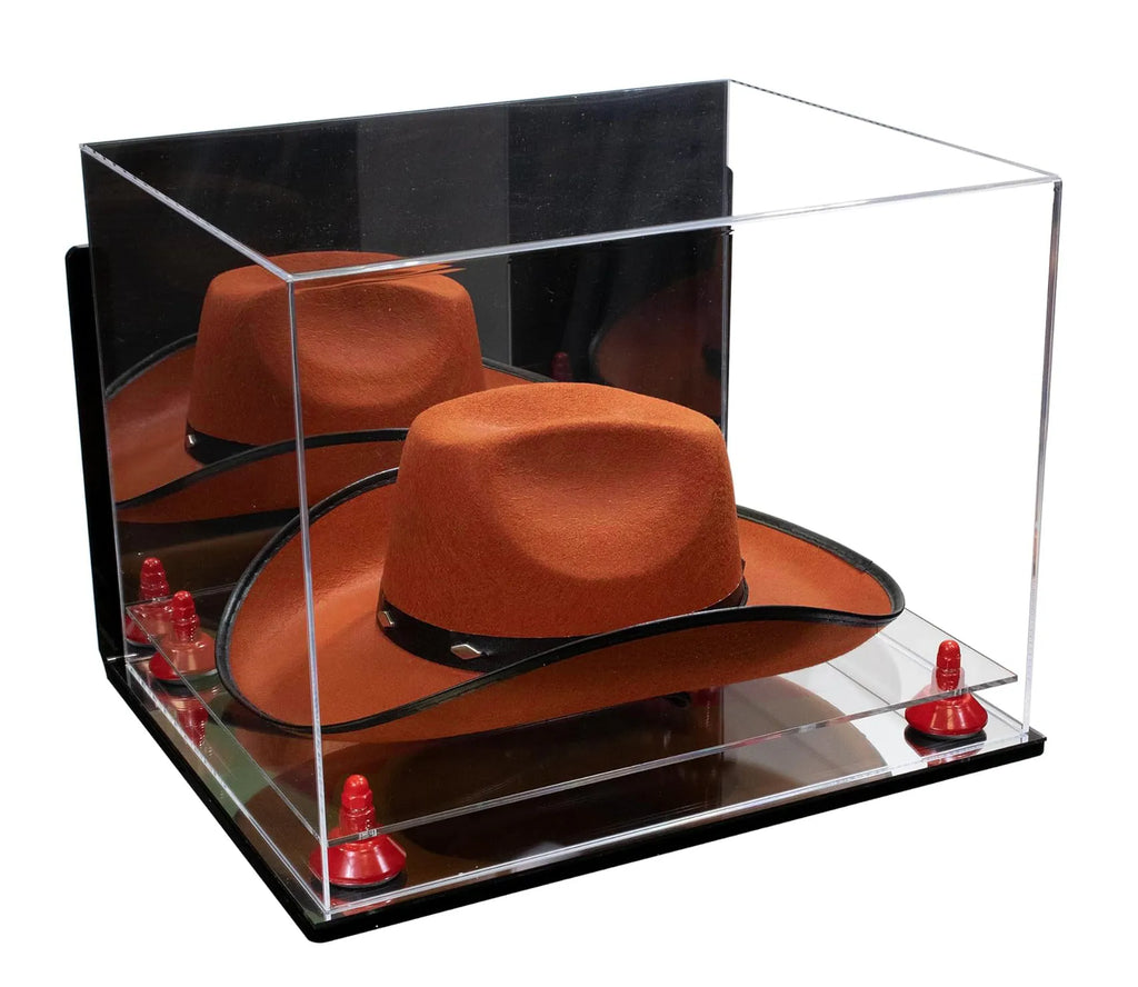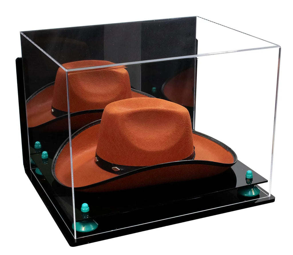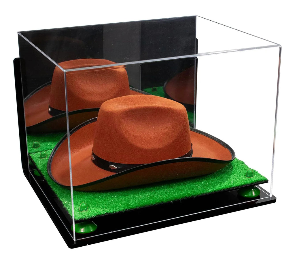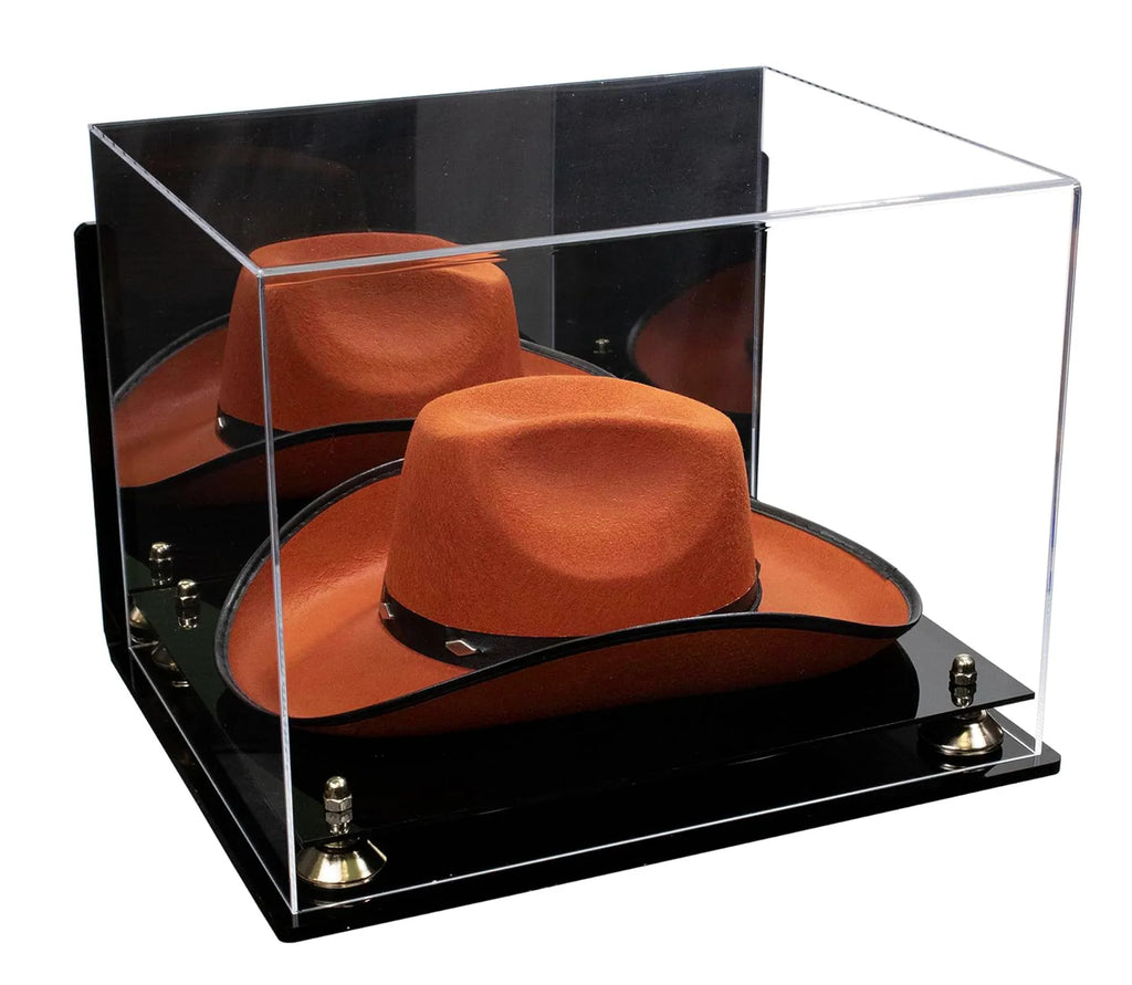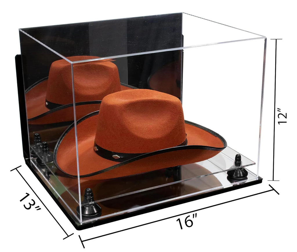 - HANDCRAFTED from 1/8" acrylic sheets; The front, back, and the top are molded from a single sheet of durable acrylic to give an aesthetically pleasing roll-over effect, perfect for displaying any Cowboy Hat