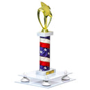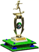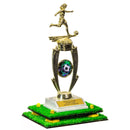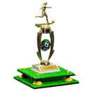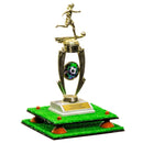 Our Trophy stand is crafted with durability in mind, ensuring that your achievements remain proudly displayed for years to come. The two-tiered design with metal risers not only enhances the visual appeal but also provides a strong and stable foundation for your trophy. Whether you're showcasing a soccer, baseball, football, basketball, or volleyball trophy, this stand is designed to keep your memories safe and secure.