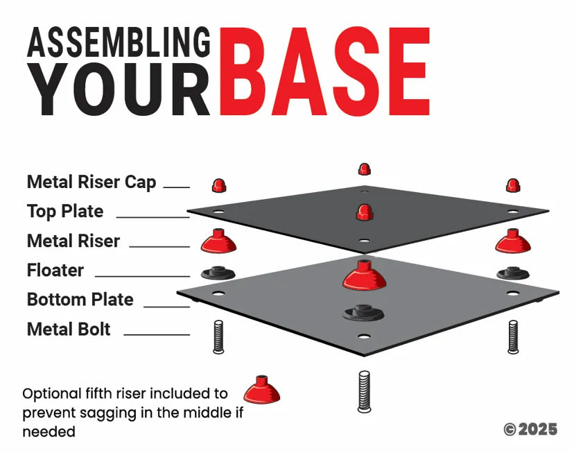 - BLACK/WHITE/CLEAR/TURF acrylic two-tiered base with gold, silver, black, red, white, orange, blue, purple, green, pink or yellow metal risers, perfect for displaying any collectible